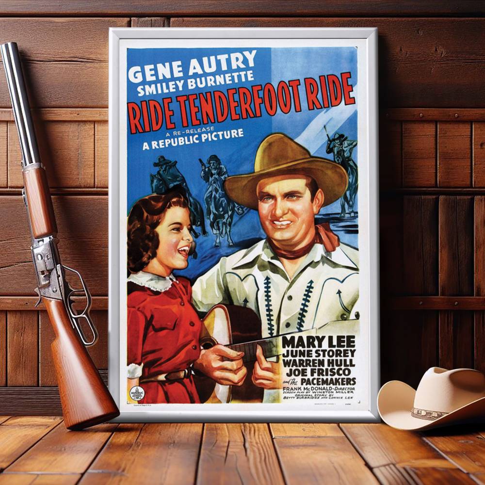 Ride, Tenderfoot, Ride is a 1940 American Western film directed by Frank McDonald and starring Gene Autry, Smiley Burnette, and June Storey. Written by Winston Miller, based on a story by Betty Burbridge and Connie Lee, the film is about a singing cowboy who inherits a meat-packing plant and must face stiff competition from a beautiful business rival.